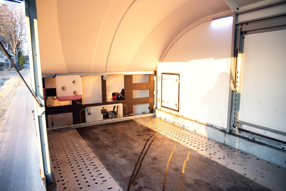 Equipment includes, among other things, a hydraulic tipper, electric winch, LED lights and a fuel-powered additional heater. Plenty of storage space and lashing points.