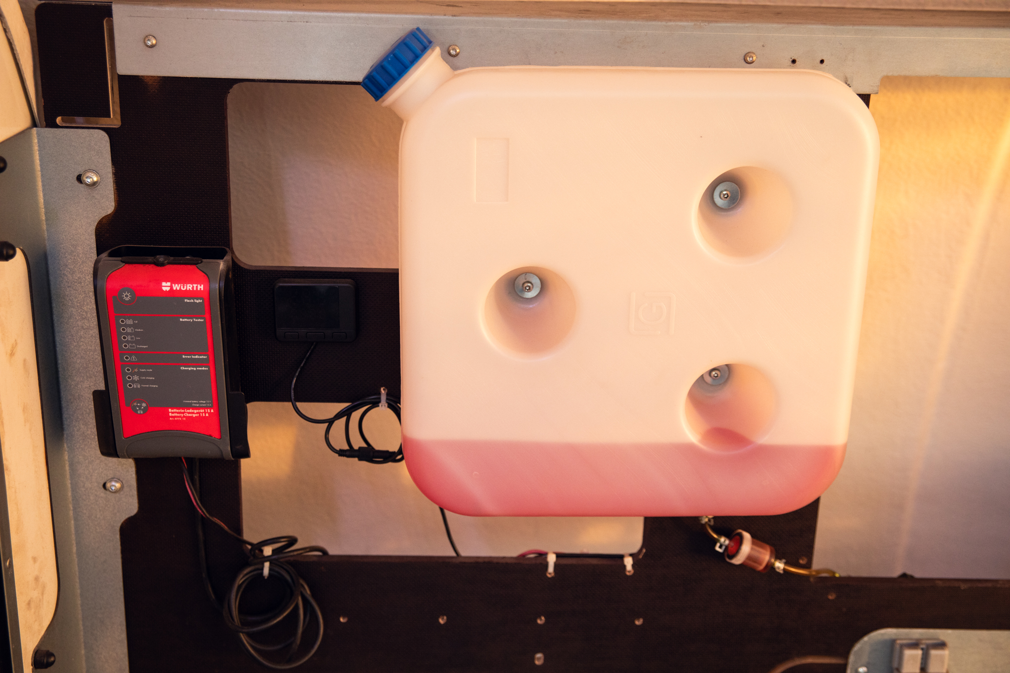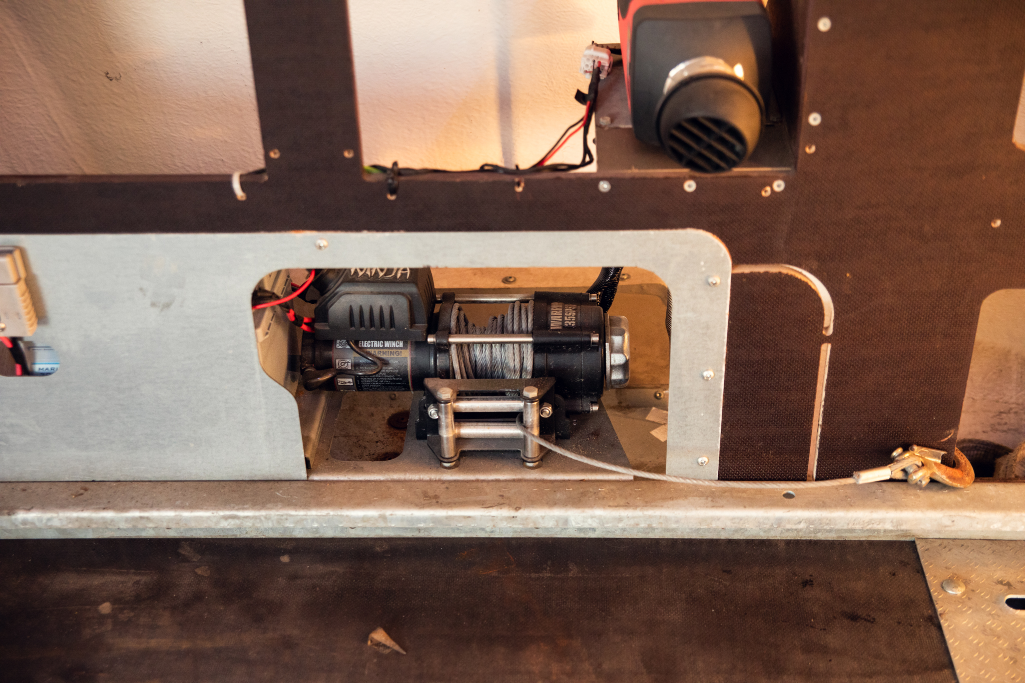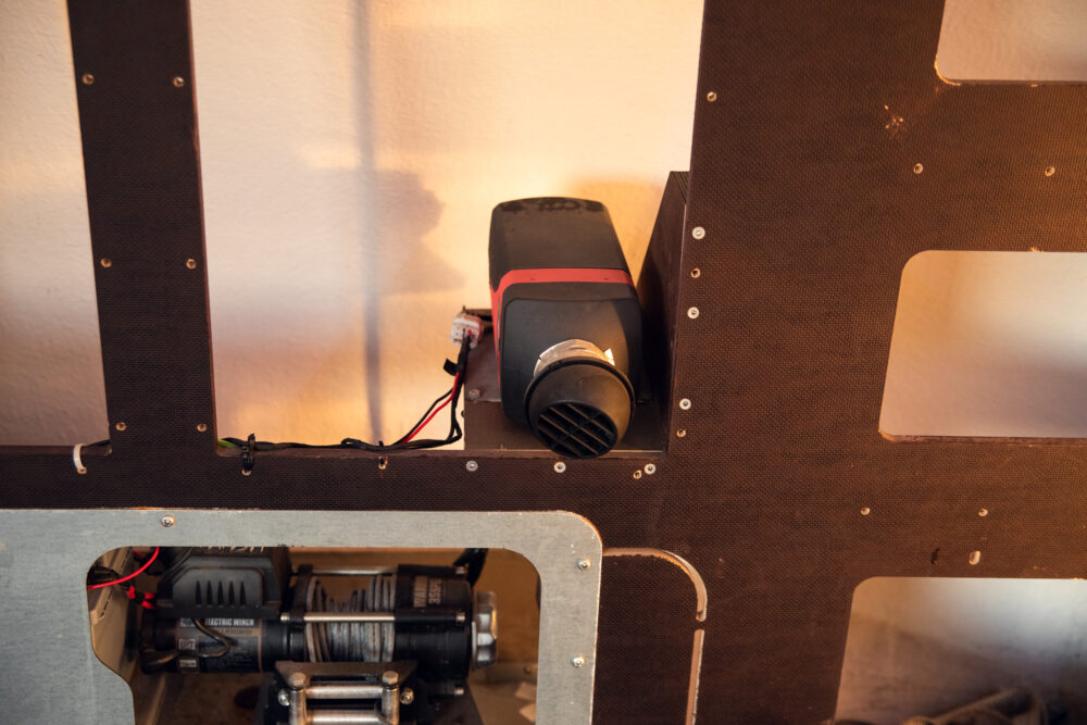 Hydraulic tipper, electric winch, fuel-powered heater