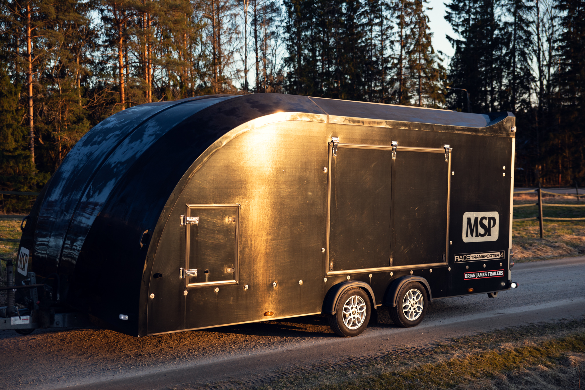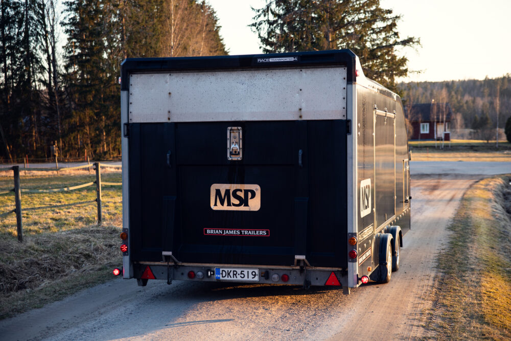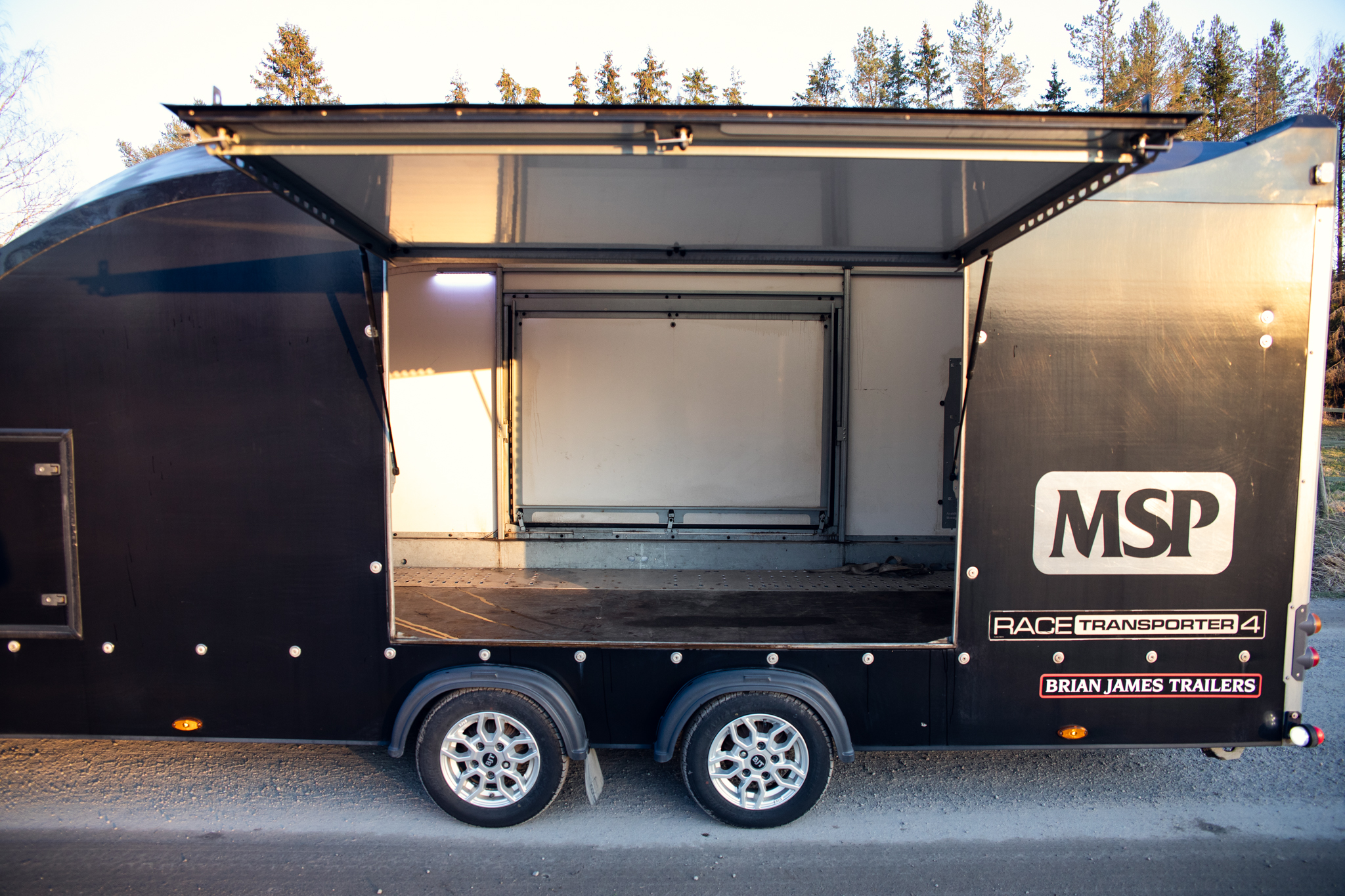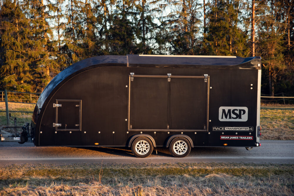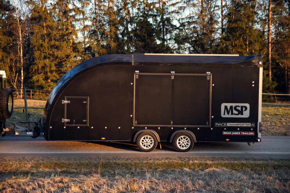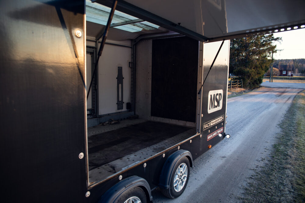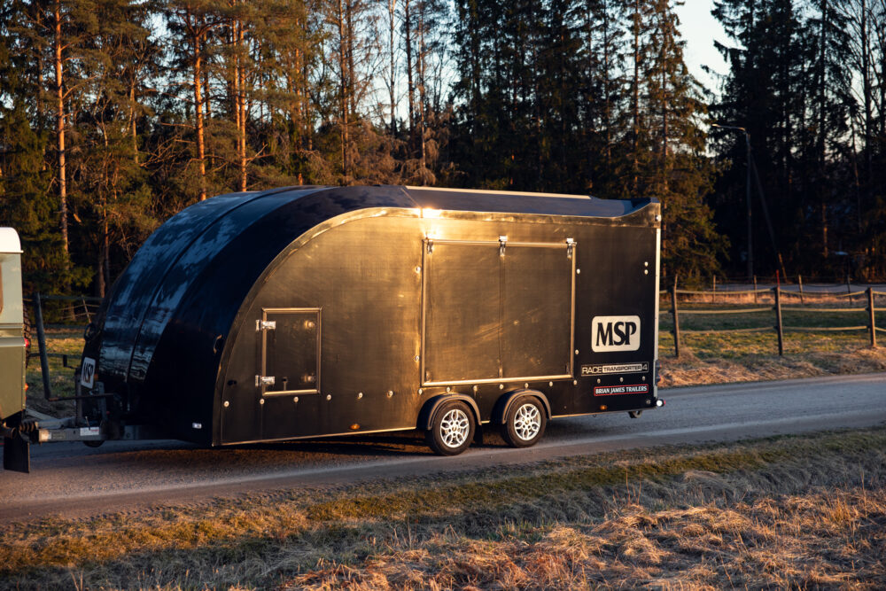 High-quality Brian James Race Transporter 4 closed trailer. The current owner acquired the trailer as new and it has been used only little.