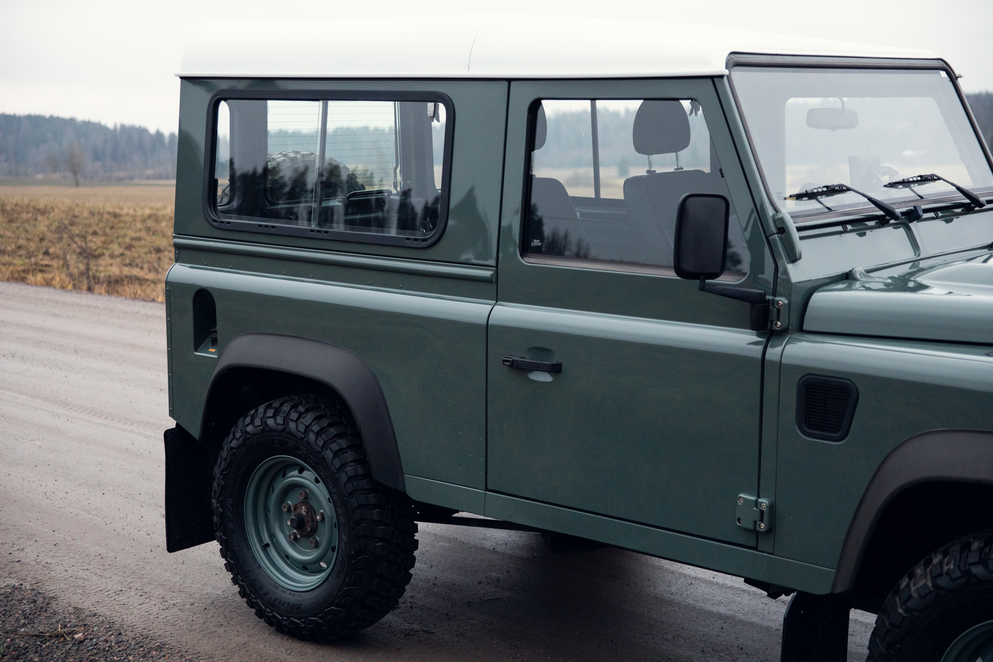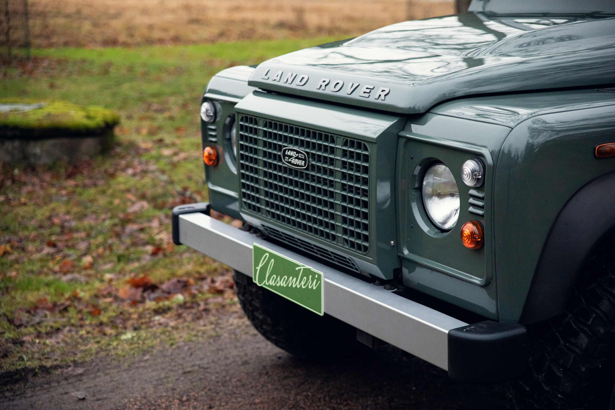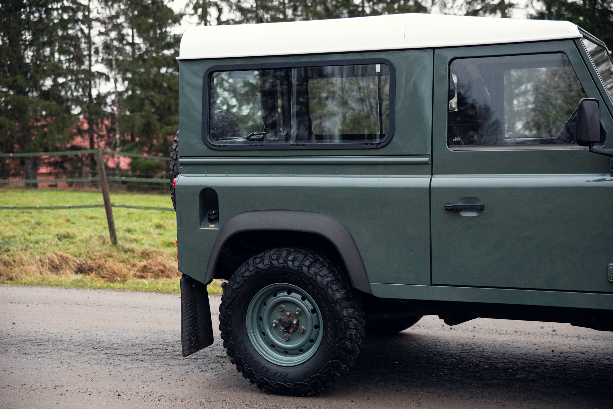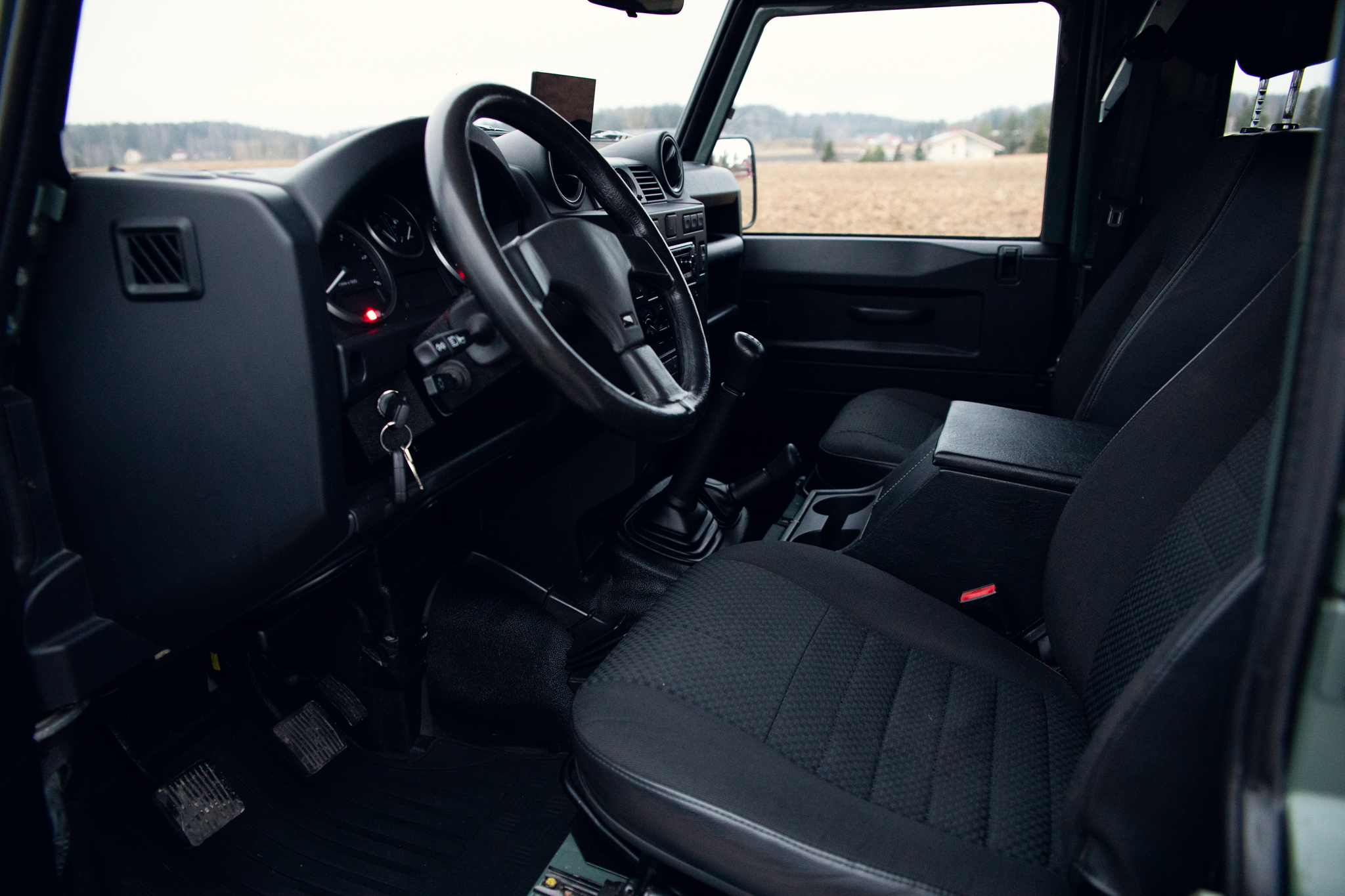 The car in question is an original short-wheelbase Land Rover Defender 90. The Keswick Green-colored 2-seater was as sold new in Germany from the official Land Rover dealer in Bielefeld and registered on 21.02.2011. The engine is a Td4 “Puma” and the transmission is a 6-speed manual. Factory equipment includes air conditioning, heated windscreen and rear window and electric windows. The car has integrated navigation with a parking camera.