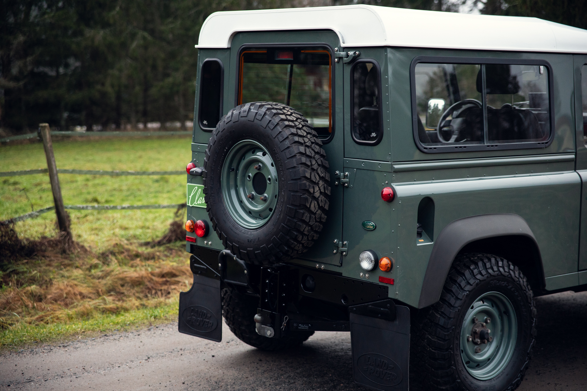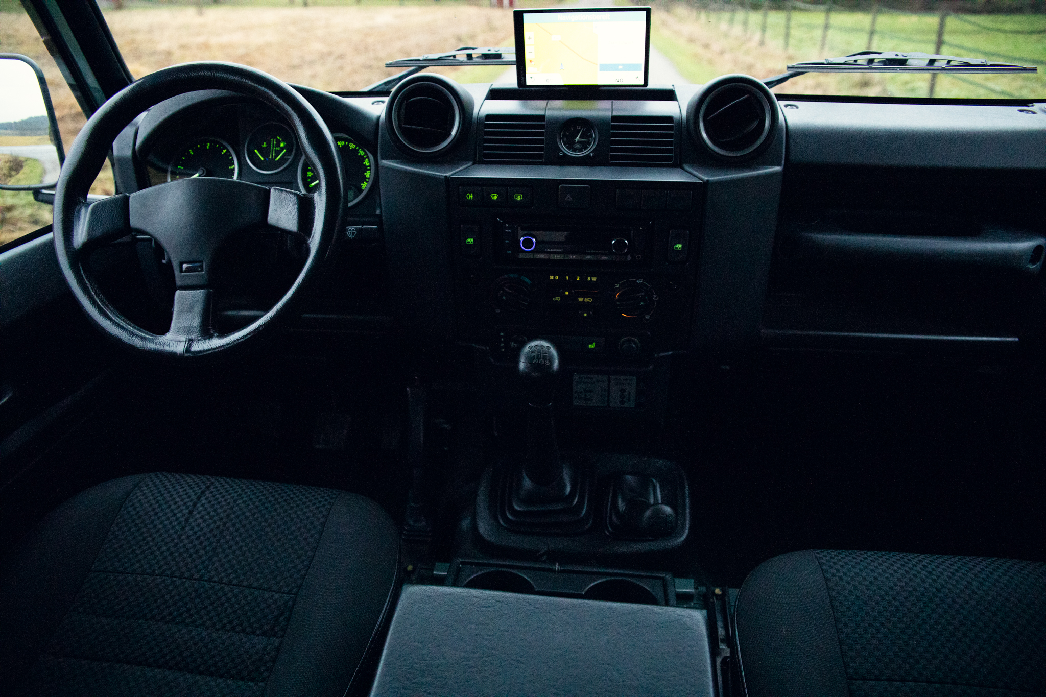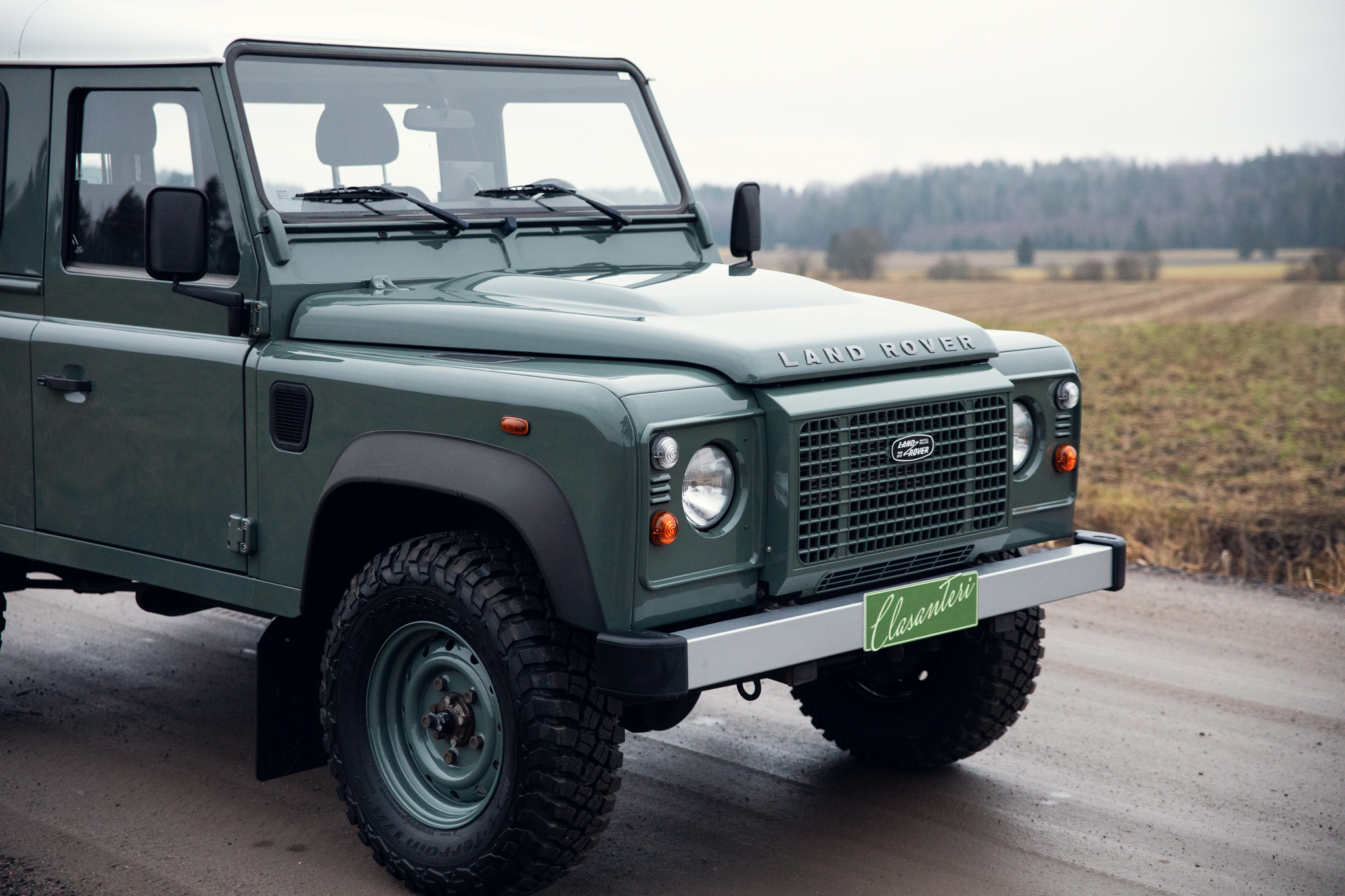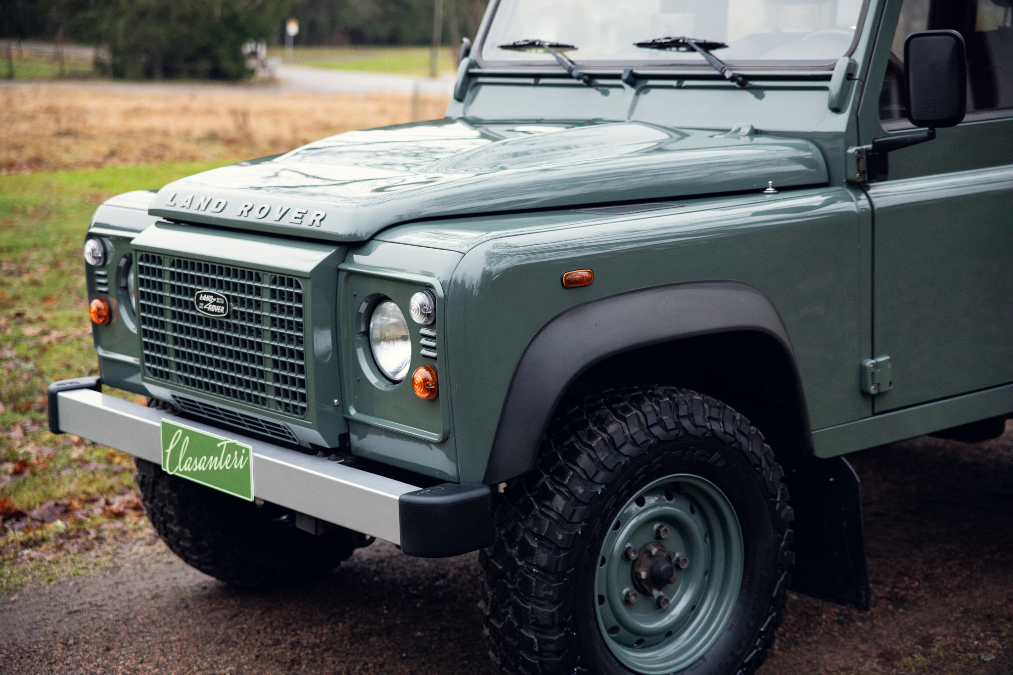 The car in question is an original short-wheelbase Land Rover Defender 90. The Keswick Green-colored 2-seater was as sold new in Germany from the official Land Rover dealer in Bielefeld and registered on 21.02.2011. The engine is a Td4 “Puma” and the transmission is a 6-speed manual. Factory equipment includes air conditioning, heated windscreen and rear window and electric windows. The car has integrated navigation with a parking camera.