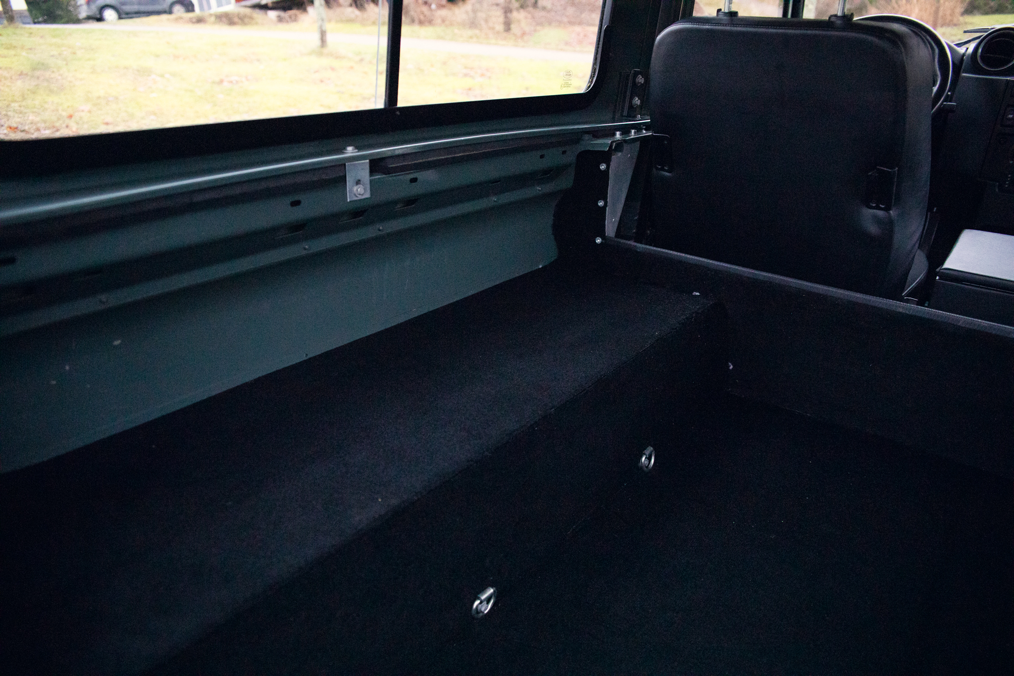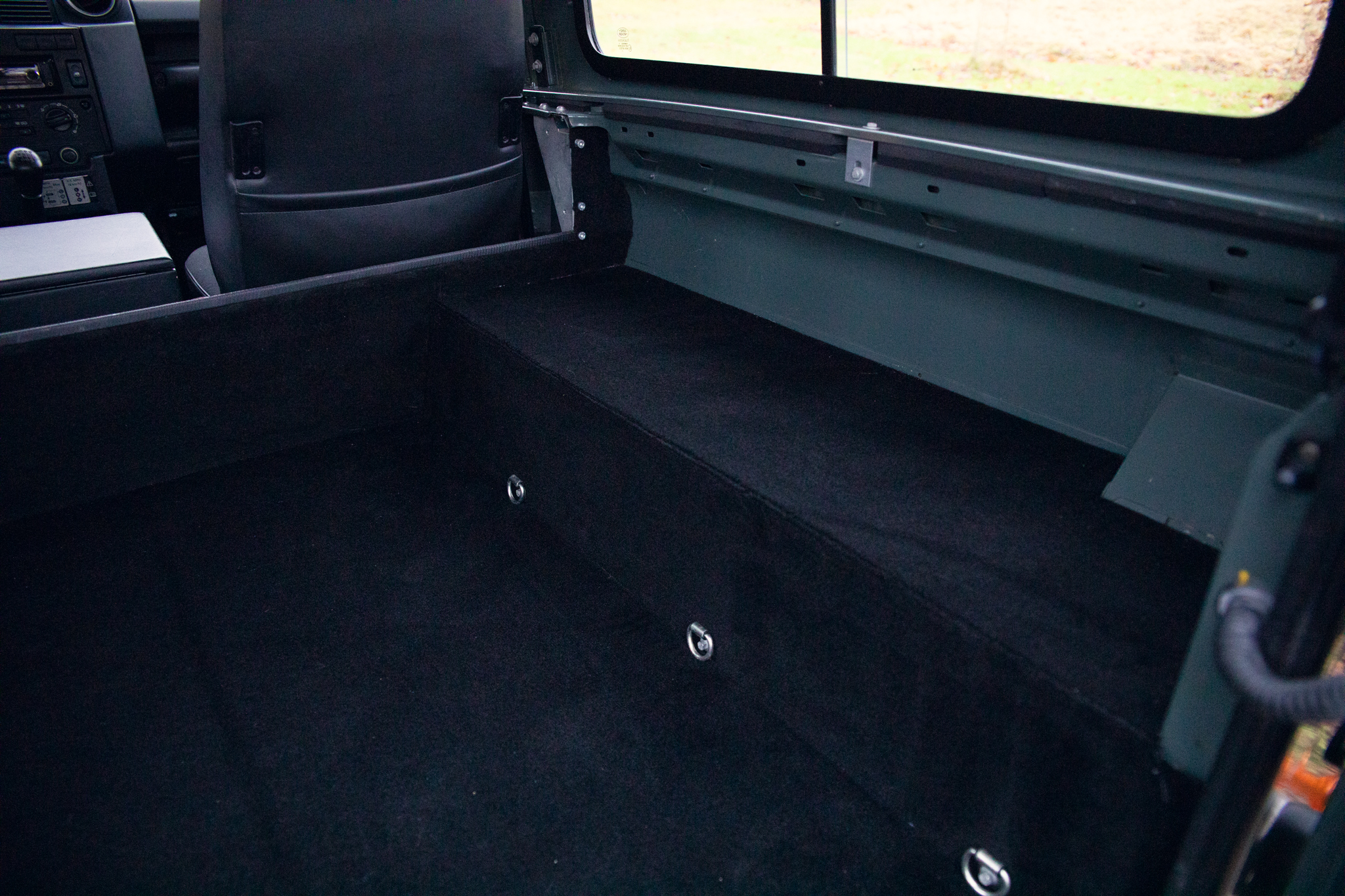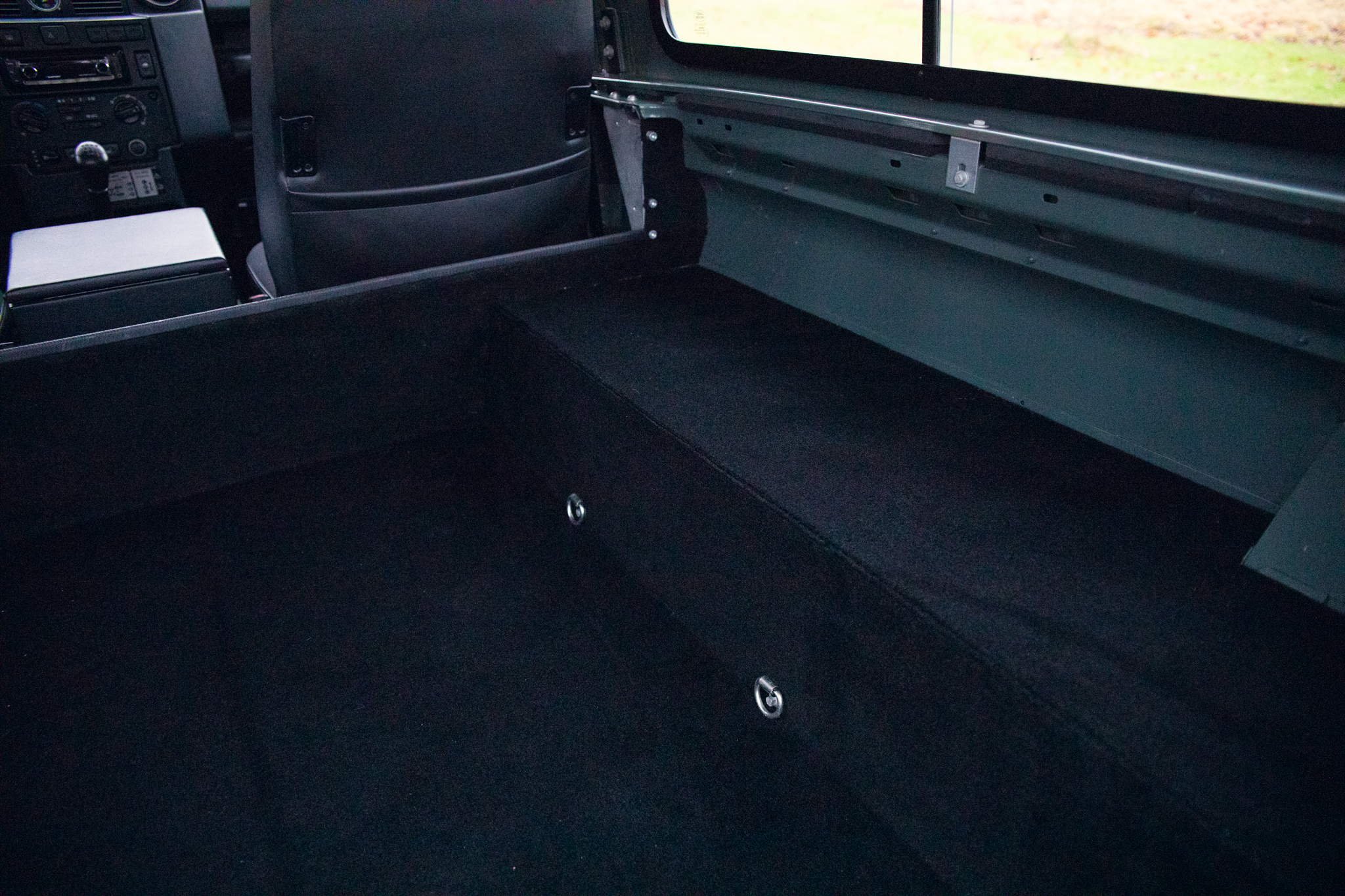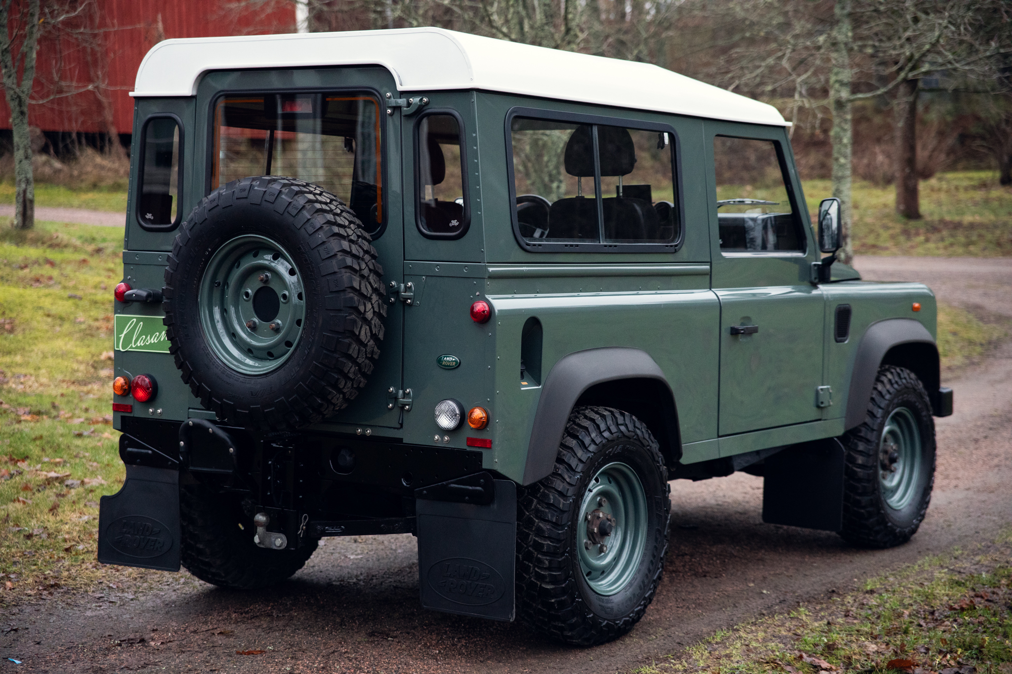The car in question is an original short-wheelbase Land Rover Defender 90. The Keswick Green-colored 2-seater was as sold new in Germany from the official Land Rover dealer in Bielefeld and registered on 21.02.2011. The engine is a Td4 “Puma” and the transmission is a 6-speed manual. Factory equipment includes air conditioning, heated windscreen and rear window and electric windows. The car has integrated navigation with a parking camera.